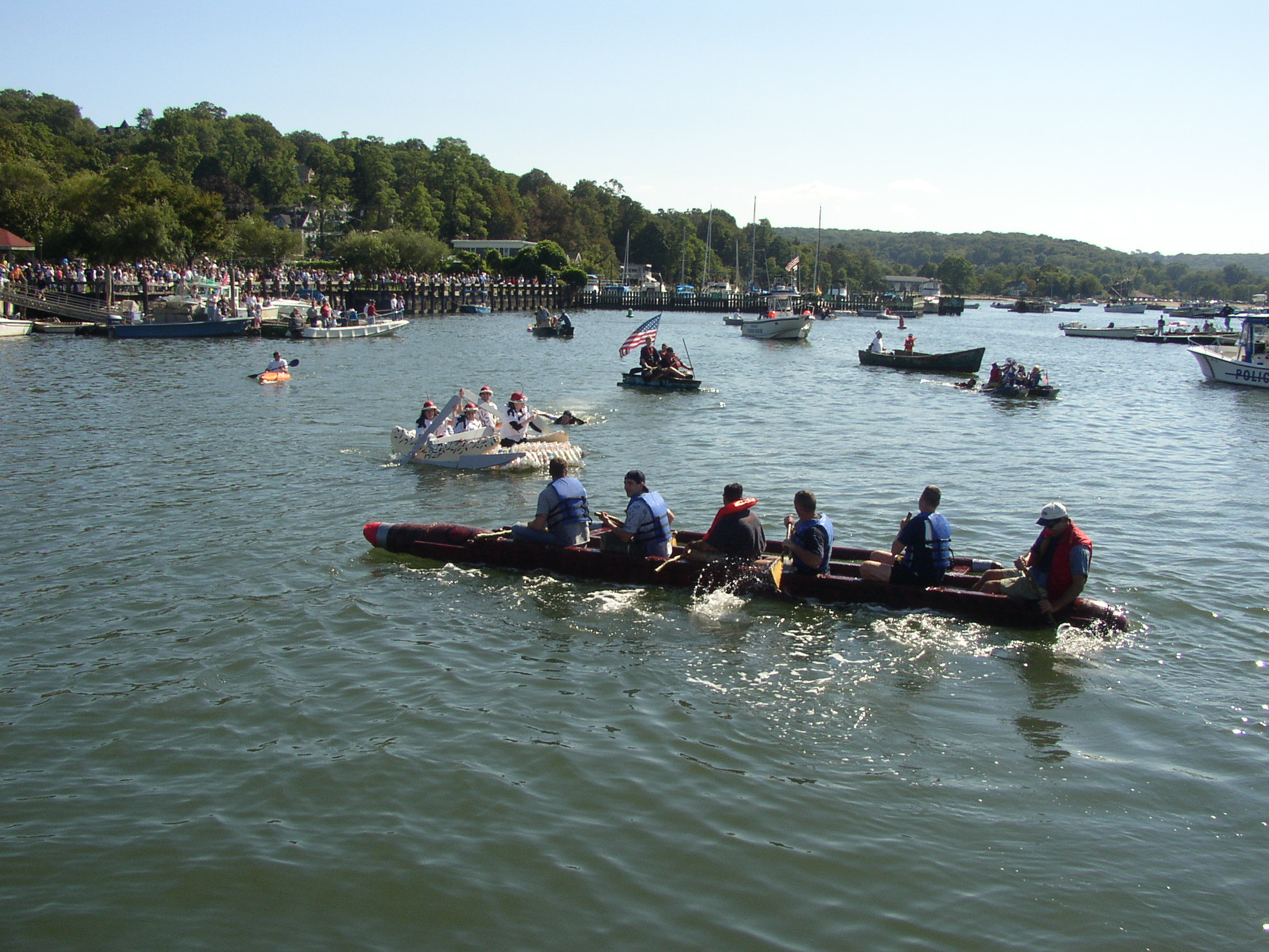 Saturday afternoon is a transition period where the remnants of the race are removed and the set up for the Cow Harbor Day festival begins. Activities on the dock are plentiful as the Village is enjoyed by its many visitors.